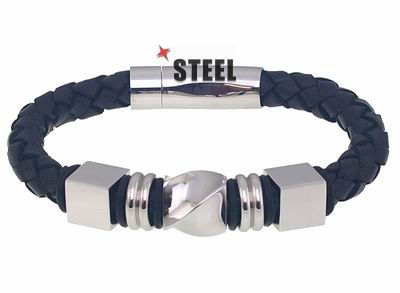 Set on a chunky braided leather cord, this bracelet flatters daily ensembles with masculine feel to spare. The shiny stainless steel cubic embellishment, barrels and twisting bead in front further graces your wrists in contemporary style.