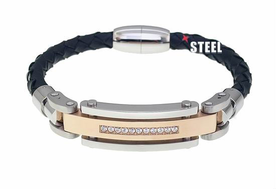 Braided leather, structured stainless steel and glistening CZ stones define this modern bracelet with masculine charm, indulging quiet luxury for versatile appeals. Its polished magnetic clasp further prompts quick fastening on wrists.