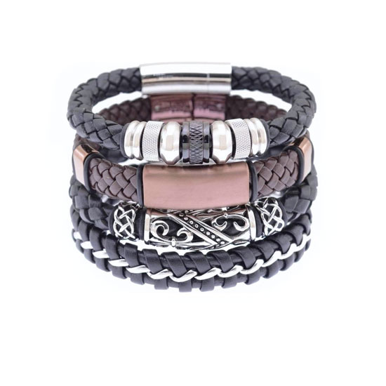 This is a bracelet with a dainty and fashionable design. It features a braided leather body with charming stainless steel accents. There are assorted designs available for you to choose from.