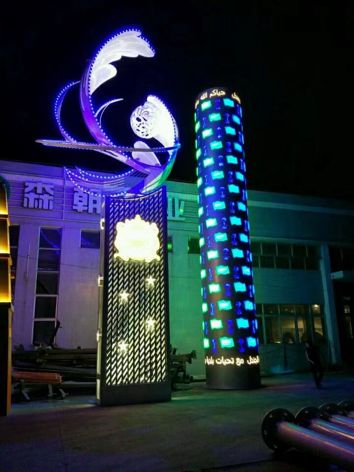 摩洛哥定制灯光雕塑,主体不锈钢,LED光源,支持来图定制