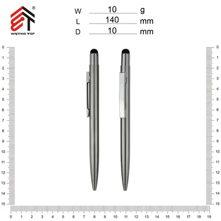 It is a metal ball pen with stylus. Barrel can laser Logo.