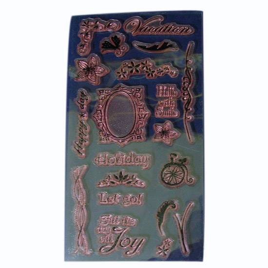 The stamp sheet features stamps in different designs for various decorative purposes. They are peeled from the acetate sheet before using and are placed back on it for storage. These reusable and easy-to-clean stamps are simple and handy art tools to decorate your art pieces.