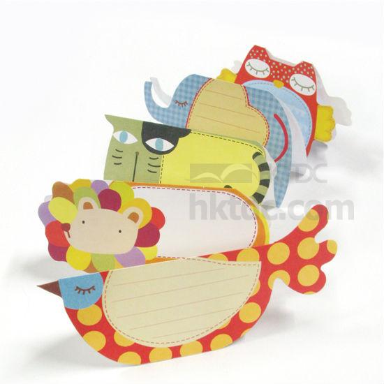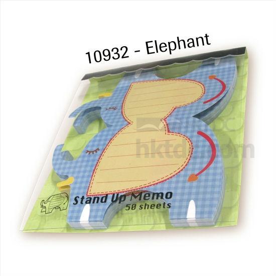 The displayed paper memo pad has a cute cartoonish elephant design and can be folded to stand up. It is adorned with checkered patterns and has lines on the body for users to write on. This memo pad includes 50 sheets of colored memos and offers a fun way to leave a message.