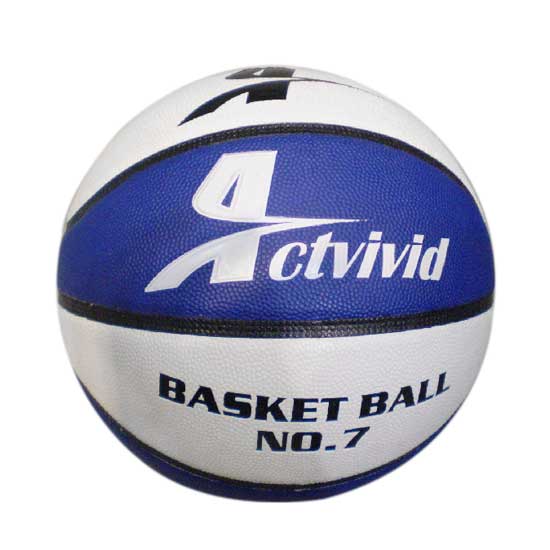 Displayed is an adhesive basketball featuring blue and white panels. It is professionally engineered into a standard size and weight. This durable basketball promises a long service life.