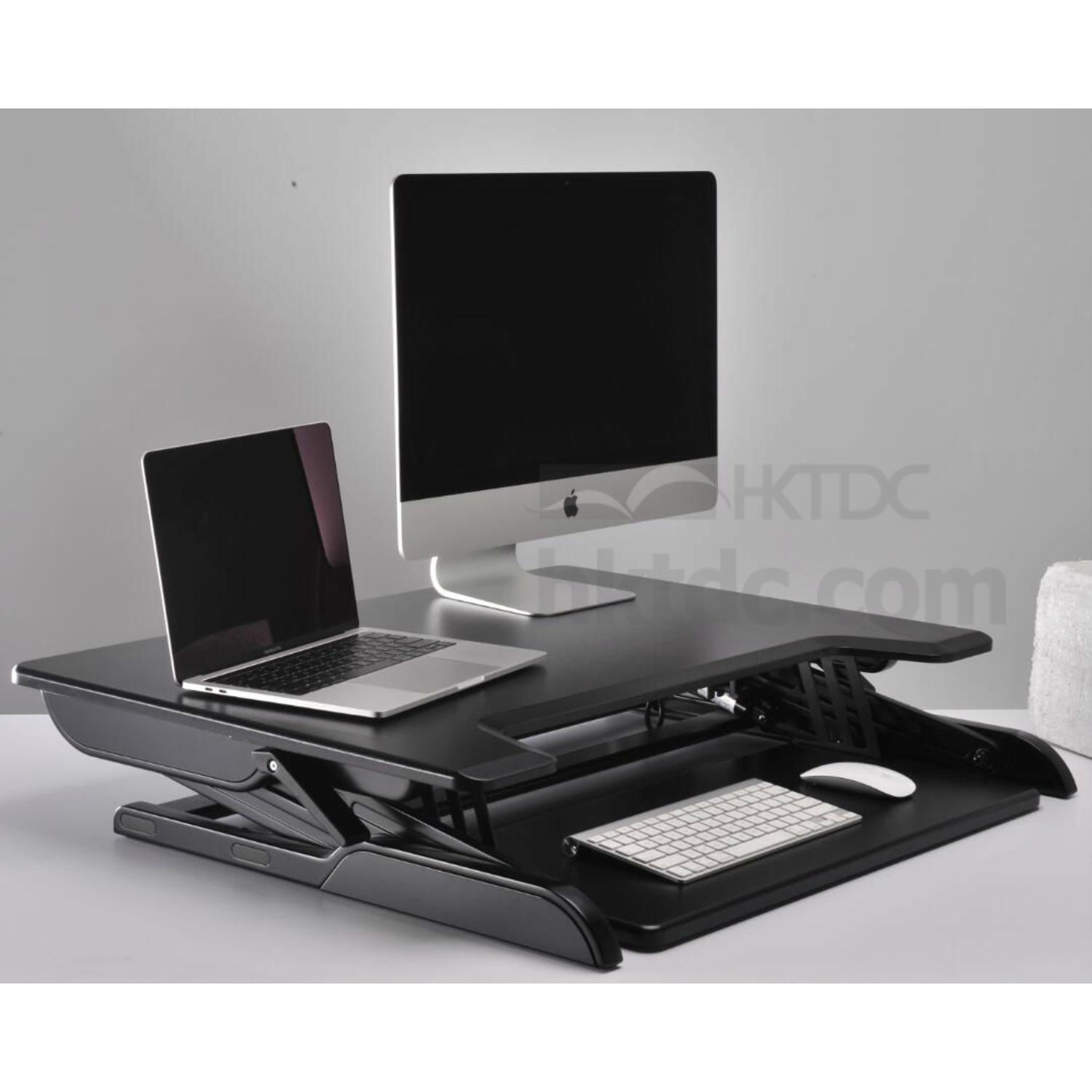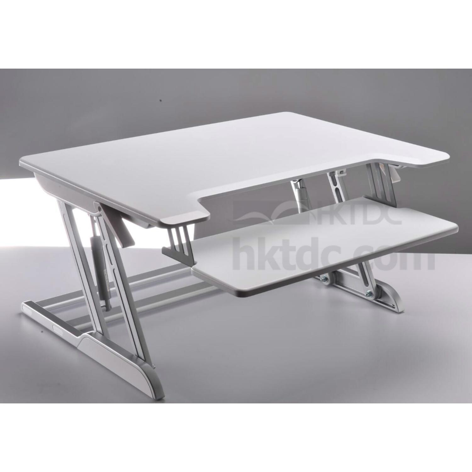 A Silky-Smooth and Quiet Z-lift Mechanism with infinite stops - creating tremendous height range adjustability, fast and easy to move from sitting to standing height. Grabbing the main work surface on the left and right edges and squeezing the brake release paddles on both sides, moving the platform to the desired height, and letting go. Easy and quiet, no more annoying others in the same office.