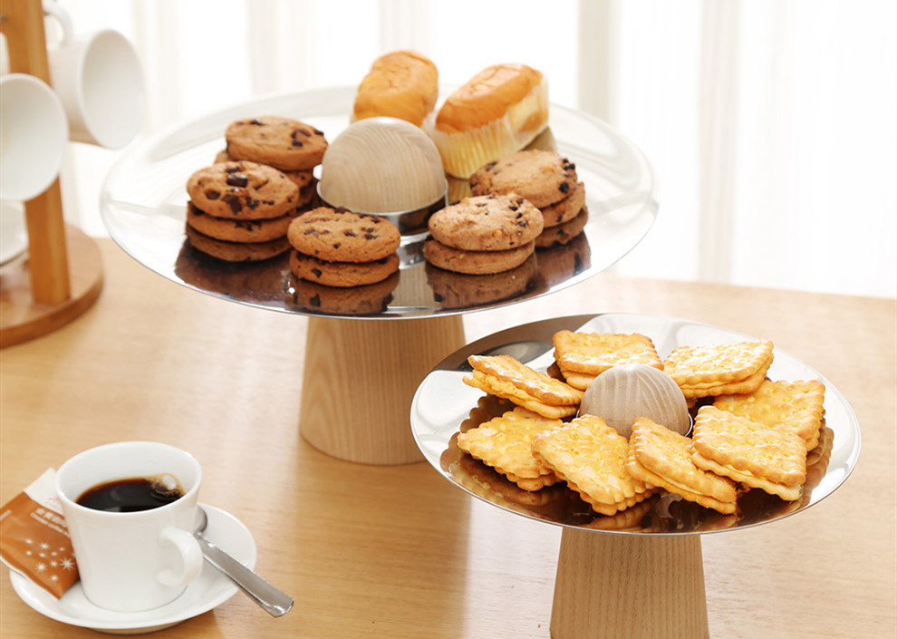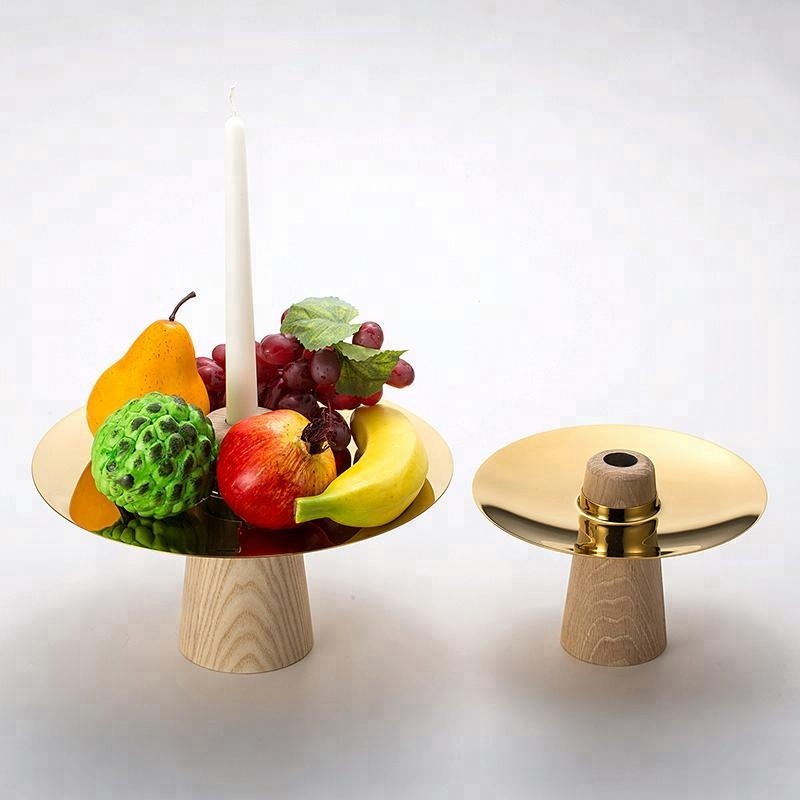• Color: natural, black for wood base; silver, gold for stainless steel plate in polished finish.