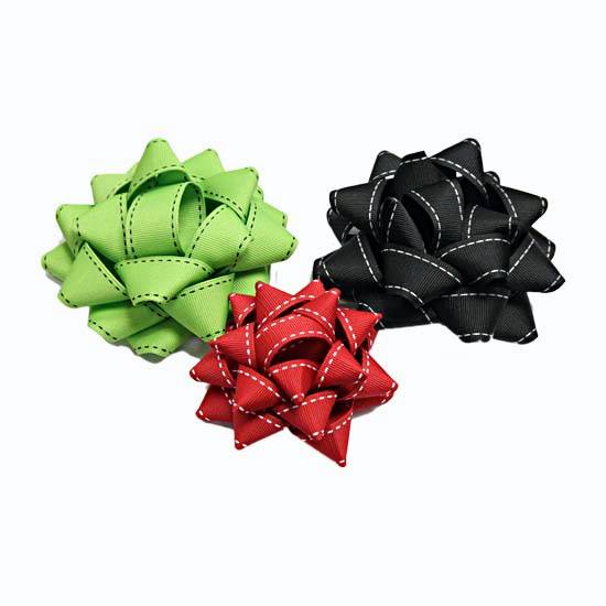 This star bow comes in different colors, including black, green, red and pink. It boasts cross-wire rib patterns with contrasting trims, which showcases a touch of sophistication. Decorate your party and gifts with this gorgeous star bow.