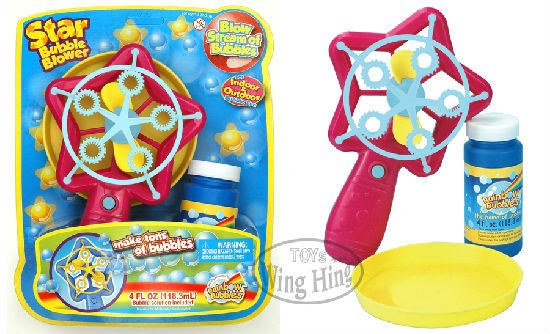 This battery operated bubble blower can blow a stream of continuous bubbles. A bottles of bubble solution included is safe for children. This bubble blower allows you to have added fun during outdoor activities.