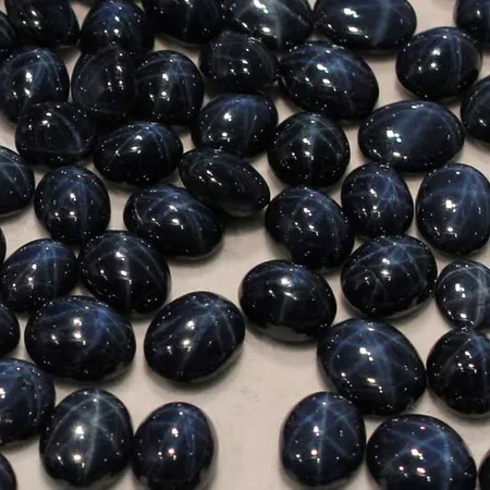 Outlined is a series of star sapphires with smooth and nearly flawless surface. Each sapphire shows a star-like figure in reflected light with natural irresistible black purple color. Those star sapphires lend a sense of sophistication and elegance to any jewelry design.