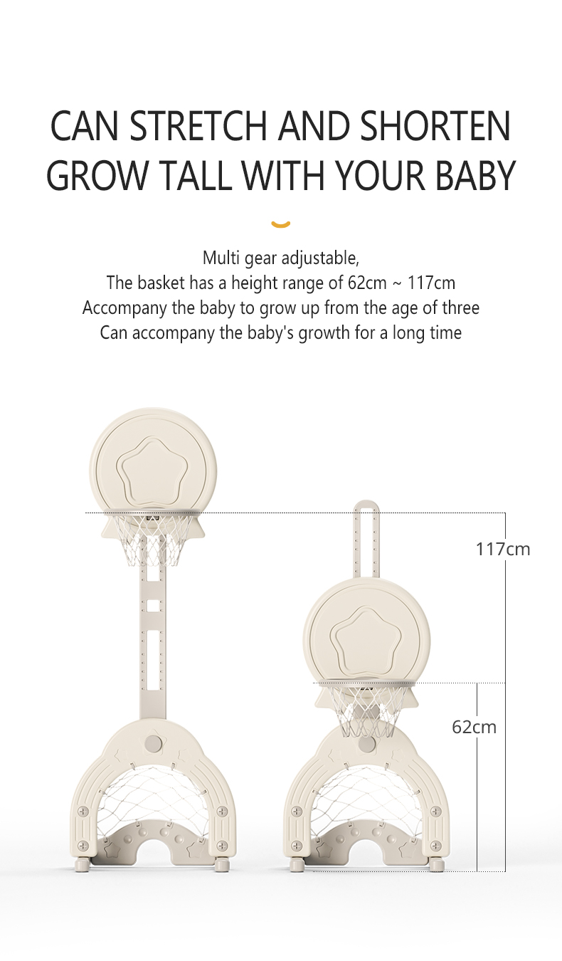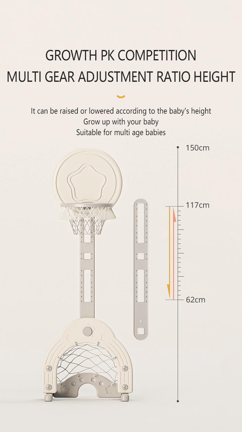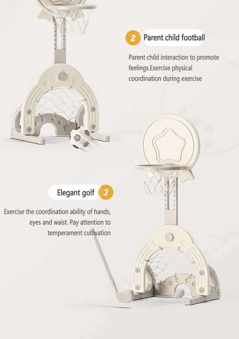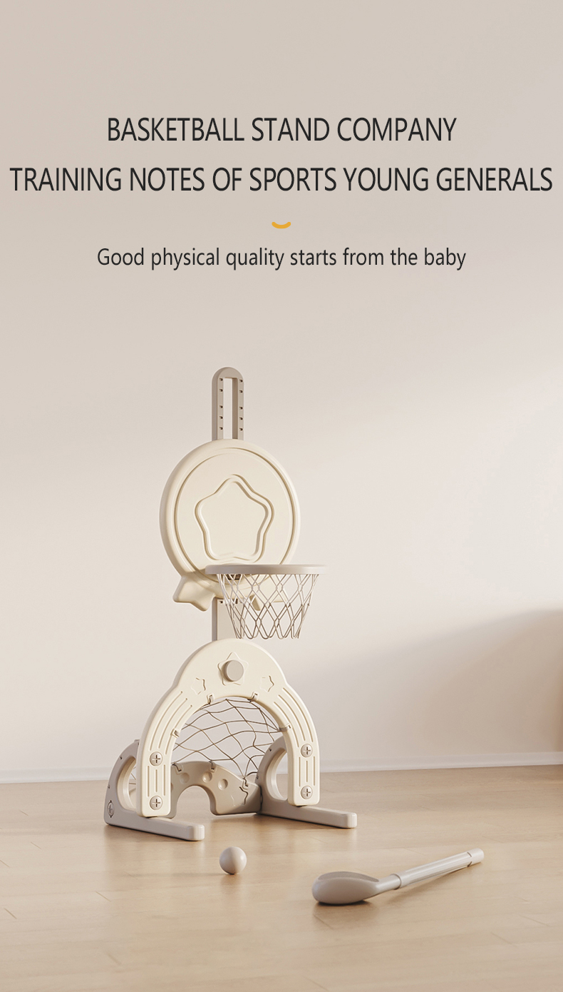 Star theme plastic indoor kids basketball stand adjustable height with football game and golf game