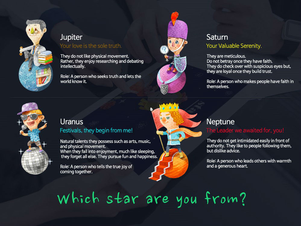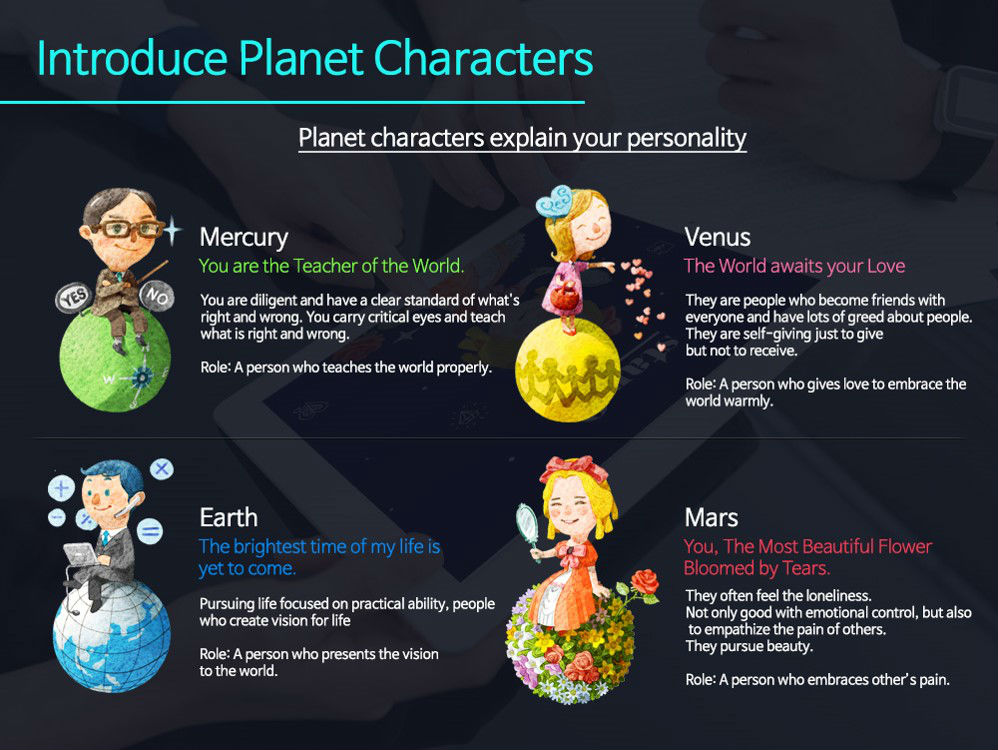 - Personality test system is a mobile-based system created to elaborate on a psychological counseling that categorizes humans' personalities into 8 different planets.