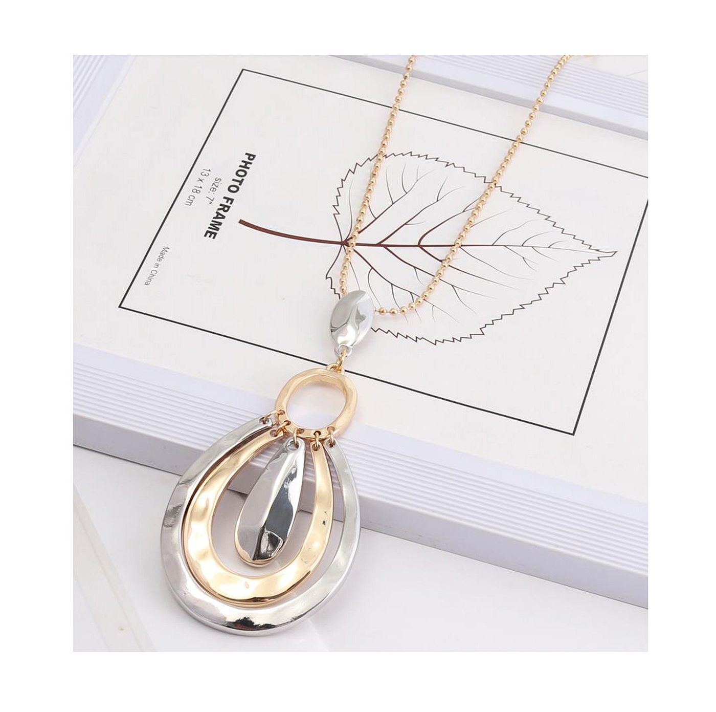 As shown is a high-fashion circle pendant golden plated alloy parts necklace.