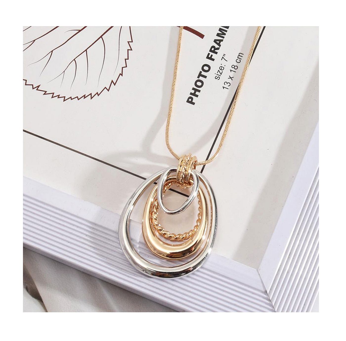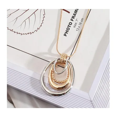 As shown is a high-fashion circle pendant golden plated alloy parts necklace.