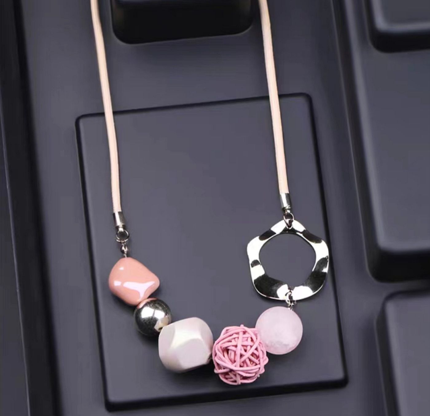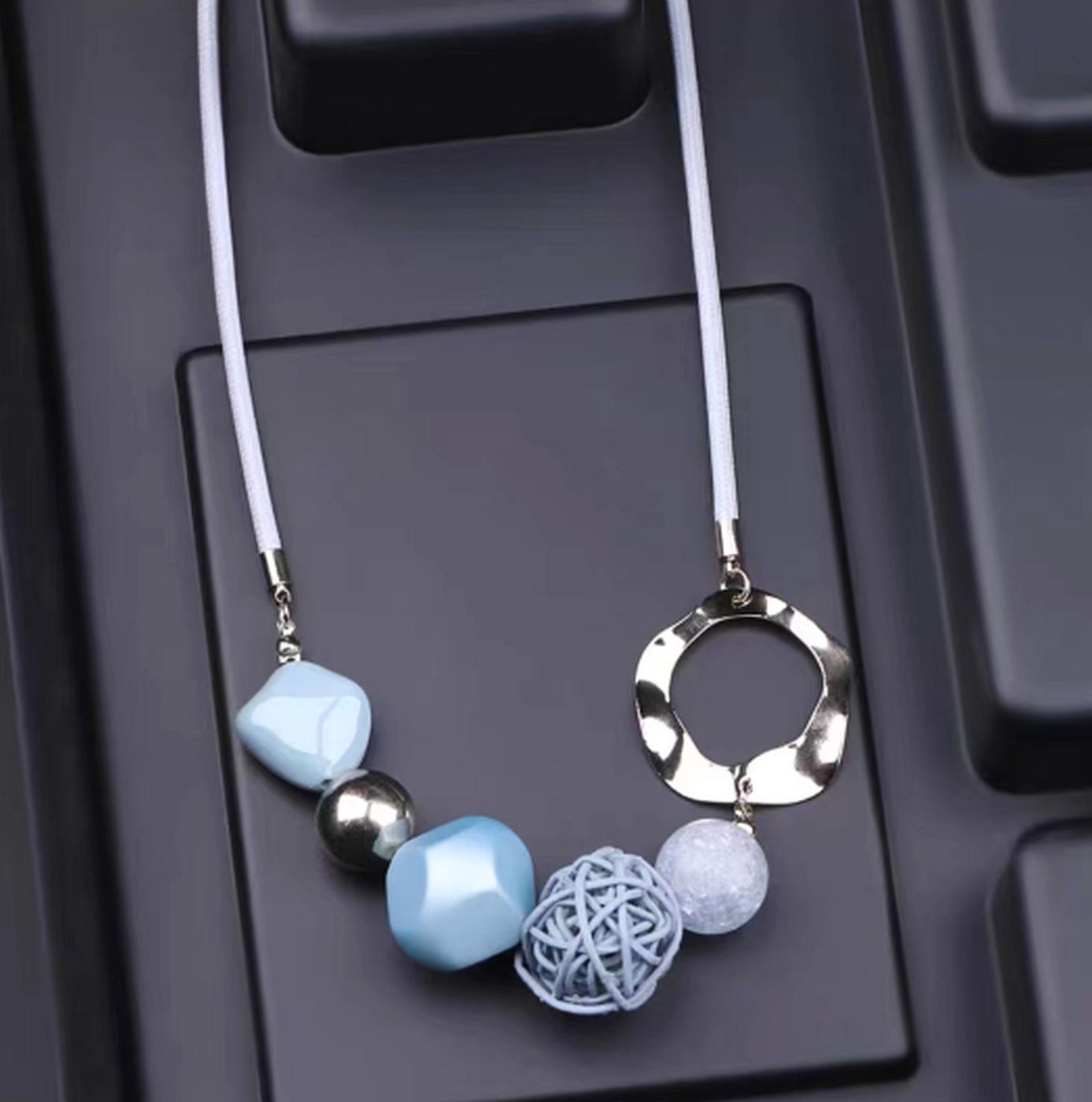 As shown is a high-fashion circle pendant alloy parts jewelry wax rope necklace.