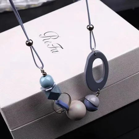 As shown is a high-fashion circle pendant plastic parts jewelry wax rope necklace.