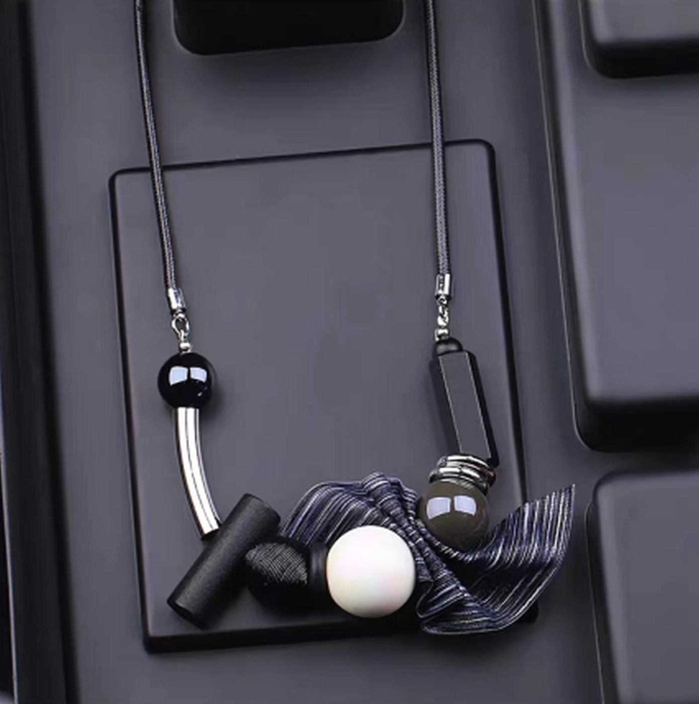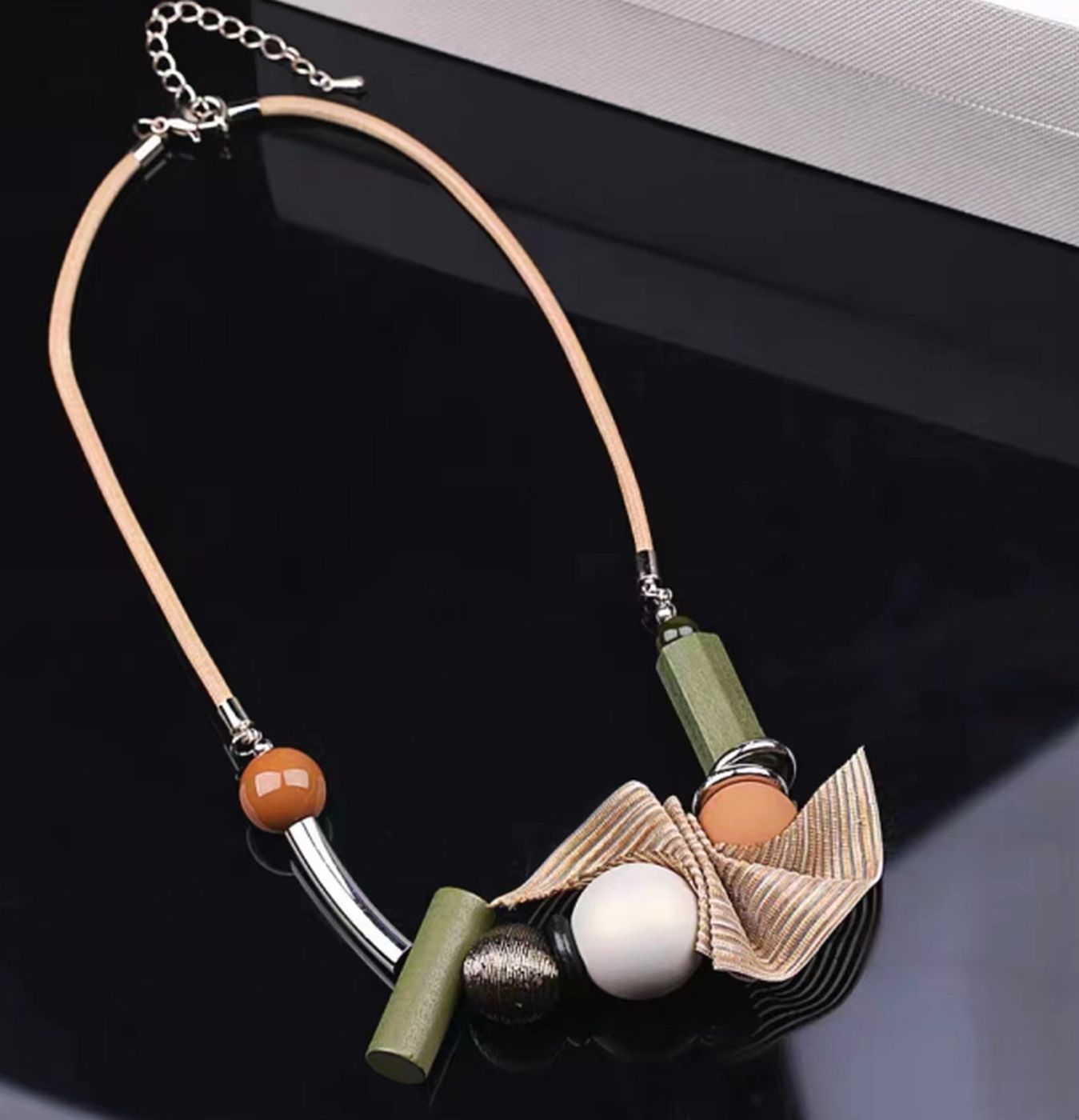 As shown is a high-fashion circle pendant plastic parts jewelry wax rope necklace.