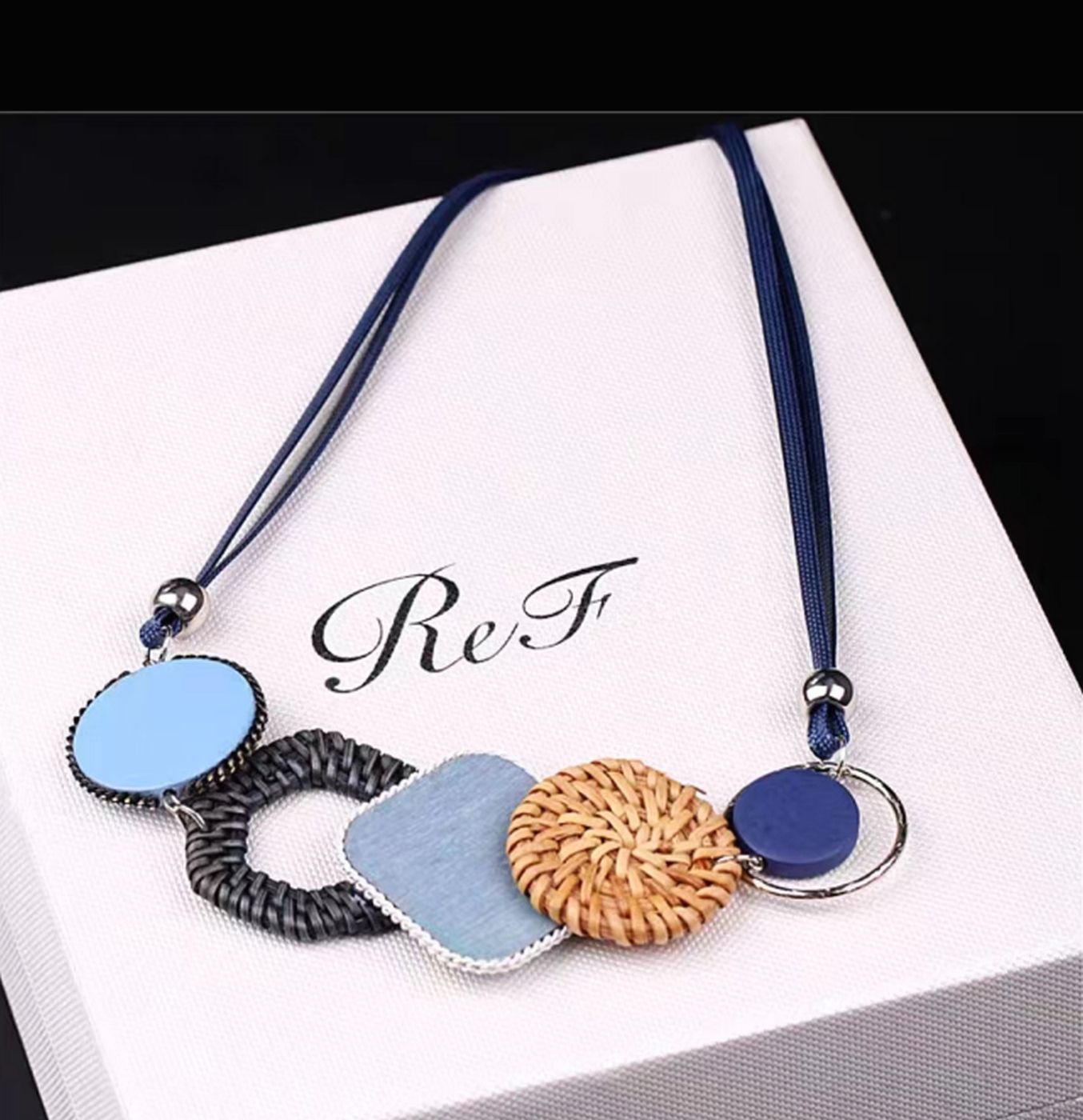 As shown is a high-fashion circle pendant plastic parts jewelry wax rope necklace.