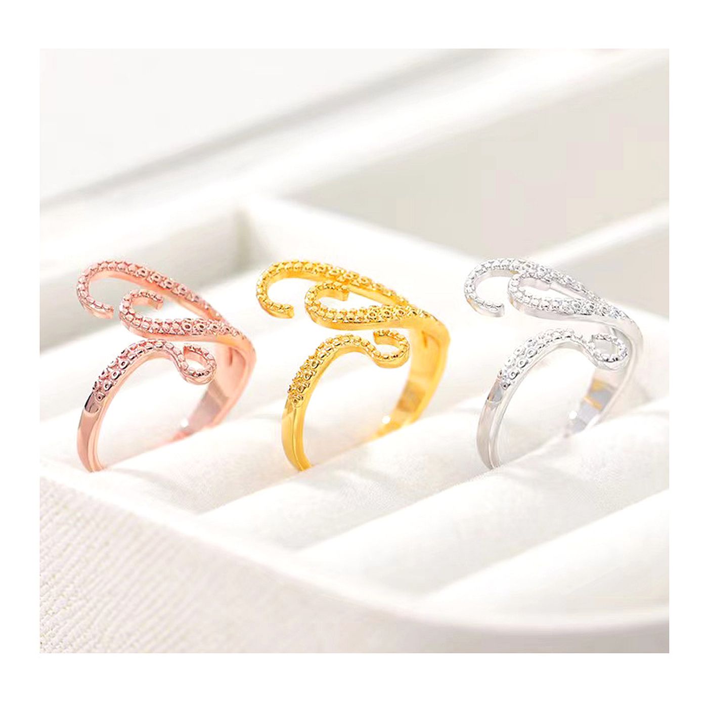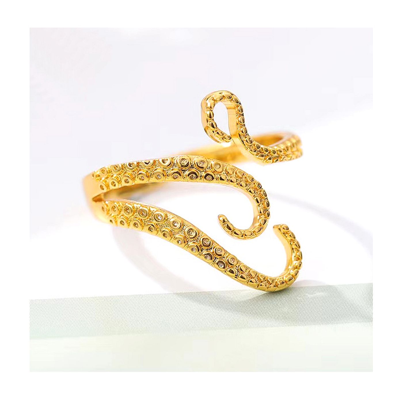 As shown is a high-fashion octopus legs style golden plated alloy ring.