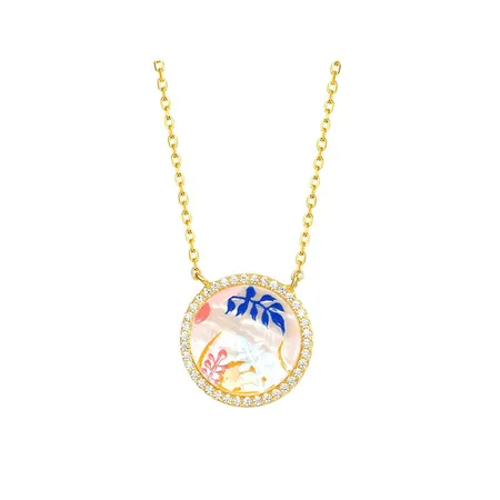 As shown is a high-fashion shell parts crystals golden plated alloy parts necklace.