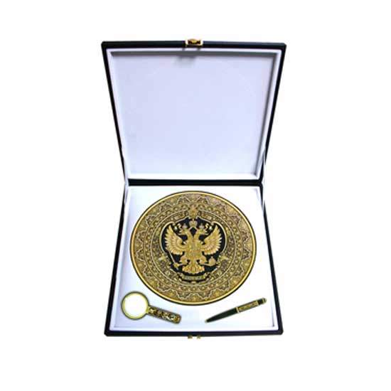Highlighted here is a stationery set finely made of 24K gold for an exquisite touch. A well-crafted plate, a magnifying mirror and a refined pen are included in this set of products. This stationery set is an ideal gift for your friends and family.