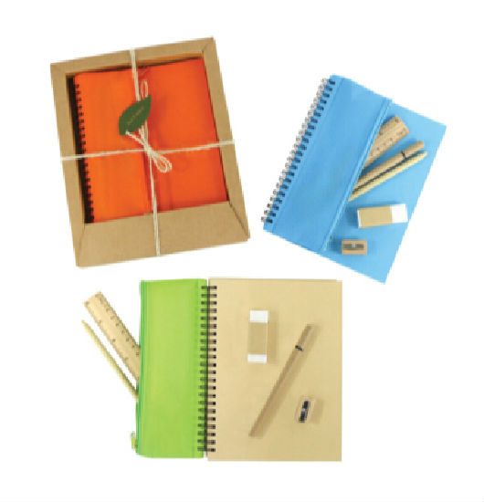This stationery set is all you need for daily work. Available in 3 plain colors, this set comprises common stationery items and a notebook. With spiral binding, the notebook is designed to open flat on a desk for easy note taking. Versatile and user-friendly, this all-in-one stationery set is suitable for school or office use.