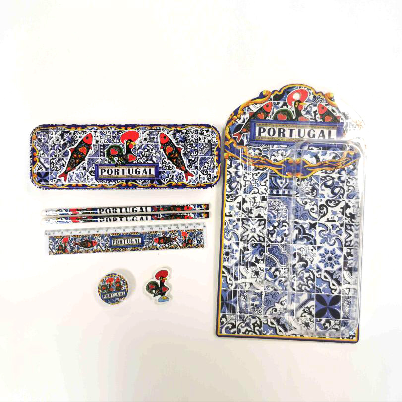 • 1pc stationery tin box+ 1pc eraser+ 1pc 18cm ruler+ 2pcs pencils+ 1pc sharpener