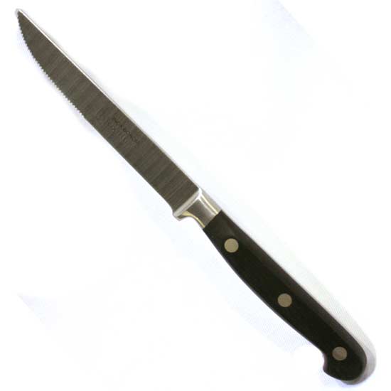 Showcased is a superior-quality steak knife that is entirely crafted with stainless steel material. This excellent steak knife is designed for extended use. This fine steak knife is the ideal addition for western-style restaurants.