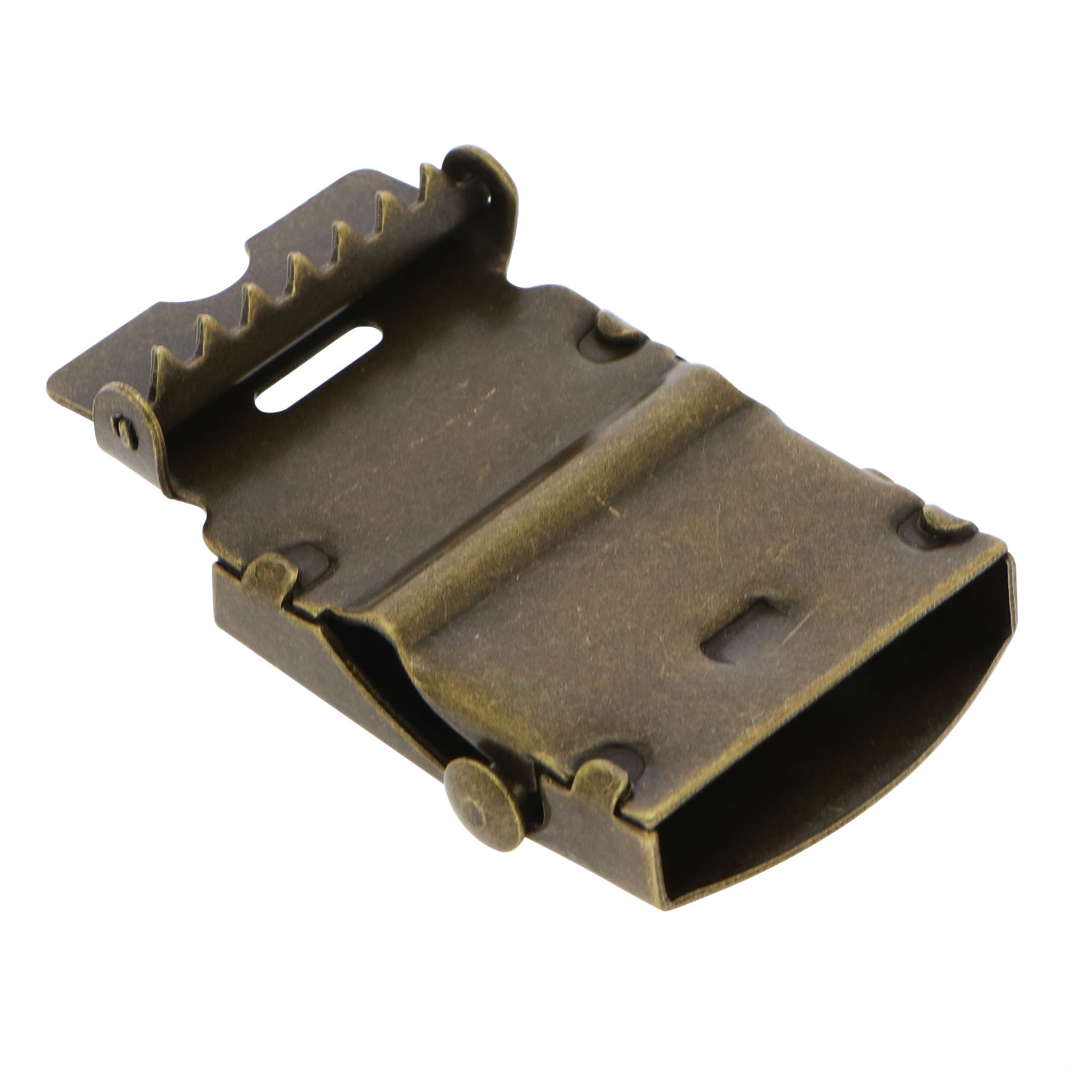 Add a vintage touch to belts with this I.D. steel military belt buckle. It comes in a rustic metallic look and has sharp teeth to ensure a secure grip on the belt. This steel belt buckle is easy to install and offers convenient belt length adjustment.