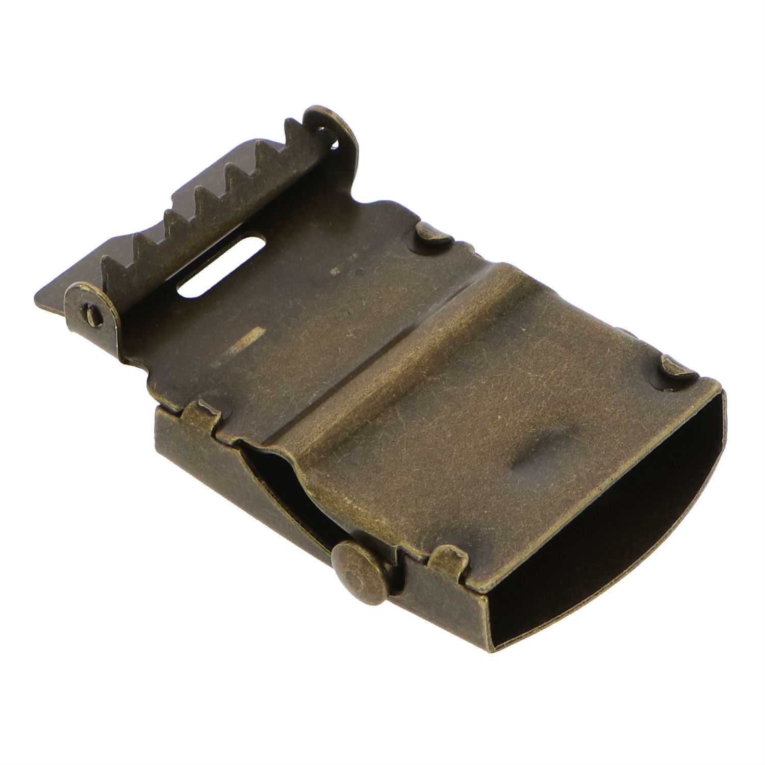 This belt buckle is made of I.D. steel and comes in a military style design. It has a rustic metallic toned exterior and is equipped with sharp teeth to ensure a secure grip on the belt. The military style steel belt buckle flaunts outstanding durability and allows smooth and simple belt adjustment.