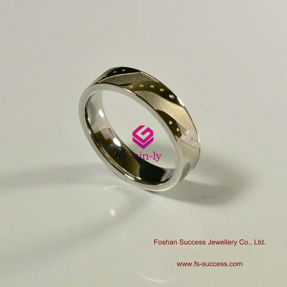 Simplistic though, this polished ring features CZ stones to add glitz and glamor to the jewelry. This ring comes in flat outside, inside and edges, while the top is carefully crafted with subtle wavy stripe pattern for added style. Fine stainless steel is employed, which makes the ring a robust one.