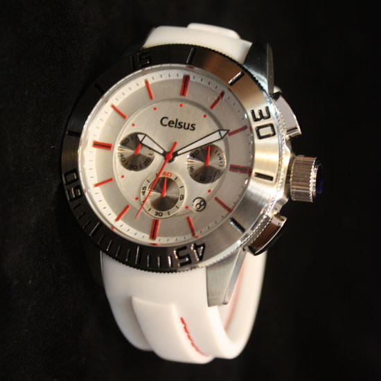 This analogue watch comes with 3 hands to tell the time. The steel case shows a deep contrast to the white plastic strap for added style. Lightweight and compact in size, the steel watch is comfortable to wear all day long.