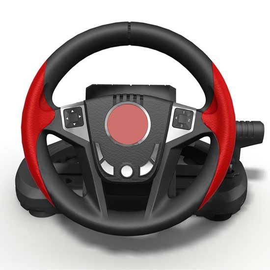 This steering wheel for computers comes with a brake pedal, a clutch pedal and an accelerator pedal for a more realistic driving experience. The motor vibration function is designed for even more excitement. This high-quality steering wheel enhances any driving games.