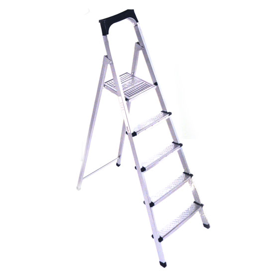 As shown here is a ladder with a 5-step design. The 5-step ladder features slip-resistant treads for maximum stability. Featuring a foldable design, this 5-step ladder saves space.