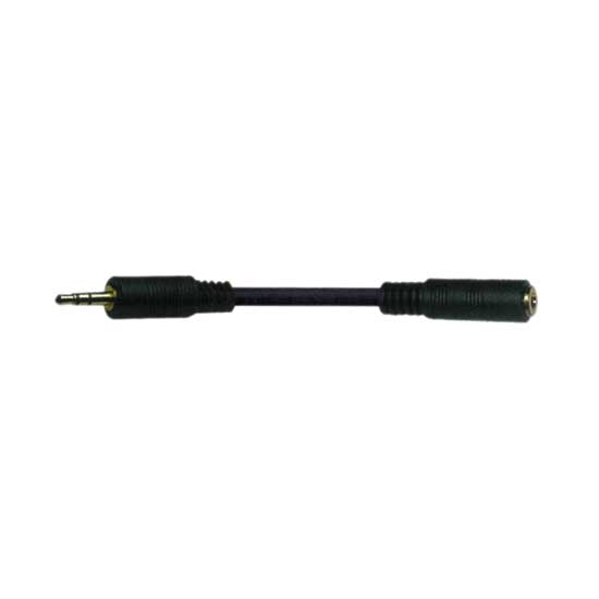 Displayed is a stereo cable that comes with a male connector and a female connector. Featuring a robust housing, this cable is durable and long-lasting. This stereo cable has a short length for saving space.