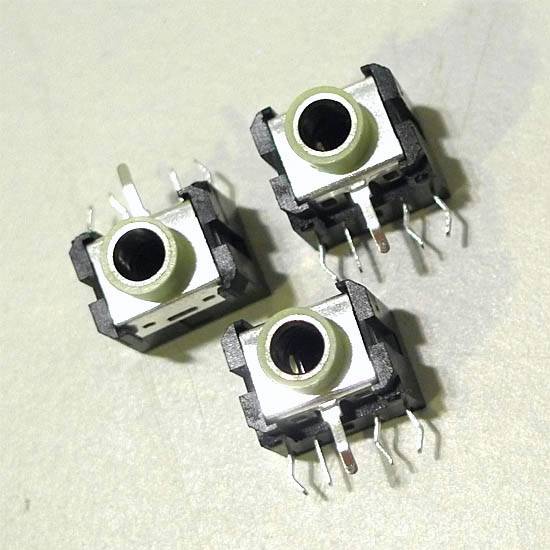 This stereo jack comes in a lightweight and compact design. It is equipped with sturdy legs for mounting on printed circuit boards. A variety of shapes and sizes are available to meet the needs of different audio equipment types.
