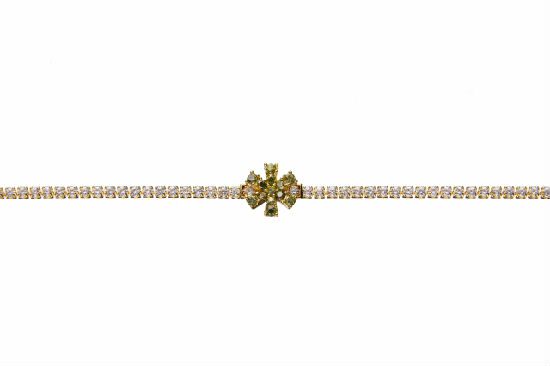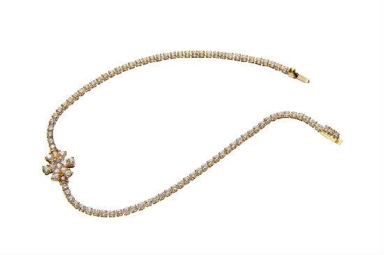 Jazz up your everyday wear with this twinkling bracelet. It features a single strand cup chain encrusted with numerous CZ stones. The matching snowflake-shaped embellishment to the middle brings a glamorous finishing touch to steal the spotlight.
