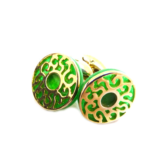 This pair of cufflinks features finely-polished jade stones for a refined appearance. The elegant cufflinks come with dainty hollow details for an extra dose of stylishness. Spruce up your minimalistic suit jacket with these precious jade cufflinks.