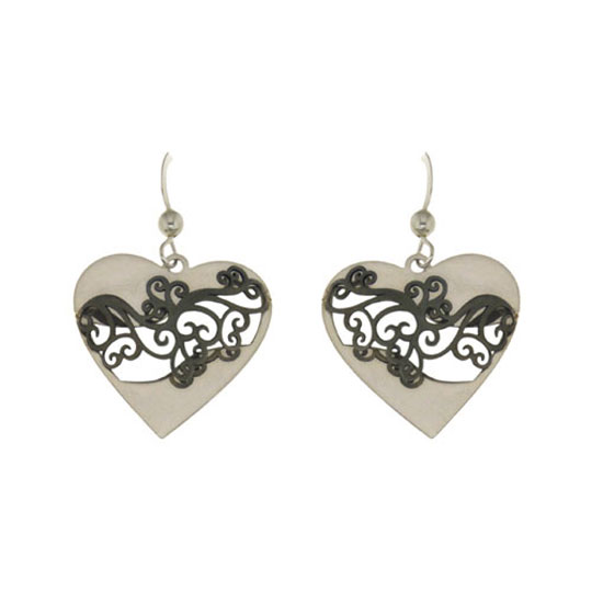These are earrings coming in a heart shape. It is delicately carved from silver ruthenium. The lightweight earring is perfect to wear all day long to complete your casual look.