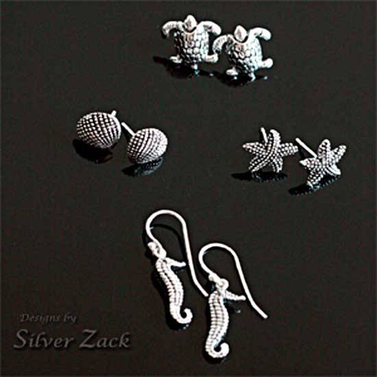 These earrings are designed based on a theme of the sea. The earrings feature the delicate appearances of sea animals, such as sea turtles, starfish and seahorses. These finely crafted earrings are great for embellishing any outfit.