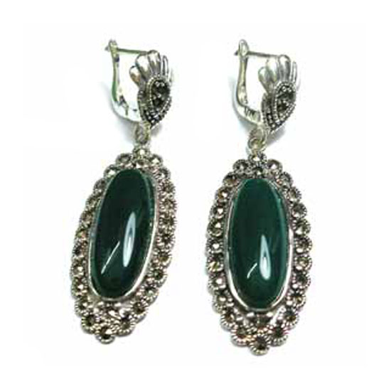 The sterling silver earrings are hung with oval-shaped decorations. The latter showcase shiny green accents and exquisitely crafted frames. The earrings are an ideal one to project your personal charm and elegance.