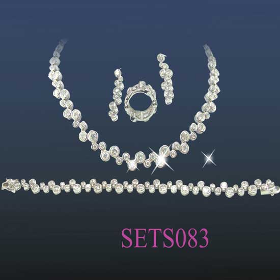 The sterling silver jewelry set in this picture comes with a pair of earrings, a ring, a bracelet and a necklace. Each piece has a quality rhodium finish to flaunt brilliance. This silver jewelry set makes a fascinating gift idea for different occasions.