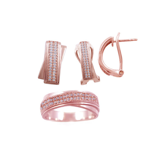 This is a sterling silver jewelry set with a pair of earrings and a finger ring. It is crafted with dazzling CZ stones for an eye-catching look. This silver jewelry set is an ideal addition to complete your jewelry box.
