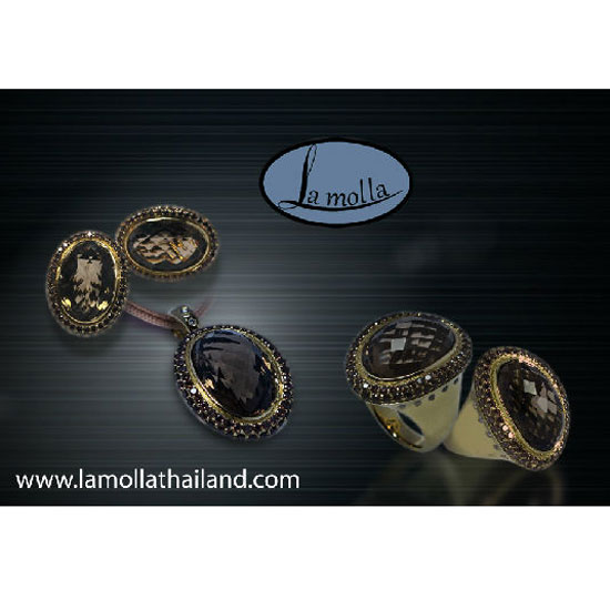 Featured here is a refined jewelry set that comprises a pair of earrings, a pendant and a ring. The oval fancy cut stone looks alluring and attractive. Bands of CZ surround the stone and enhance the glamour of the set.