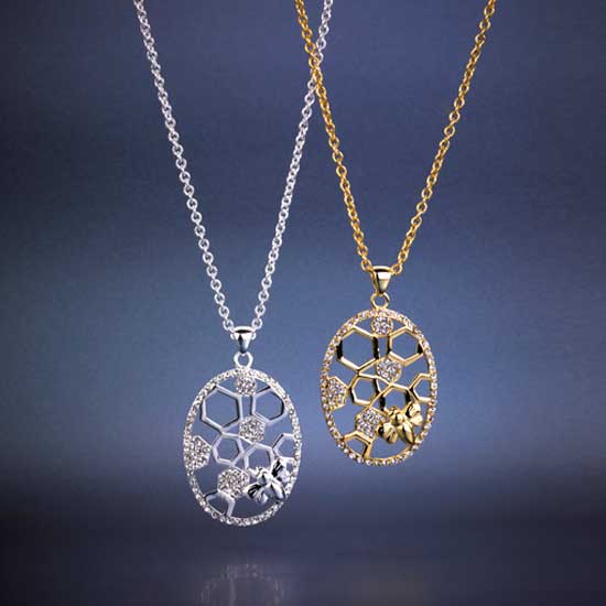This is a sterling silver necklace that is available in two colors. Decorated with sparkling crystals, this necklace is eye-catching and fashionable. This high quality necklace is great for spicing up your daily look.