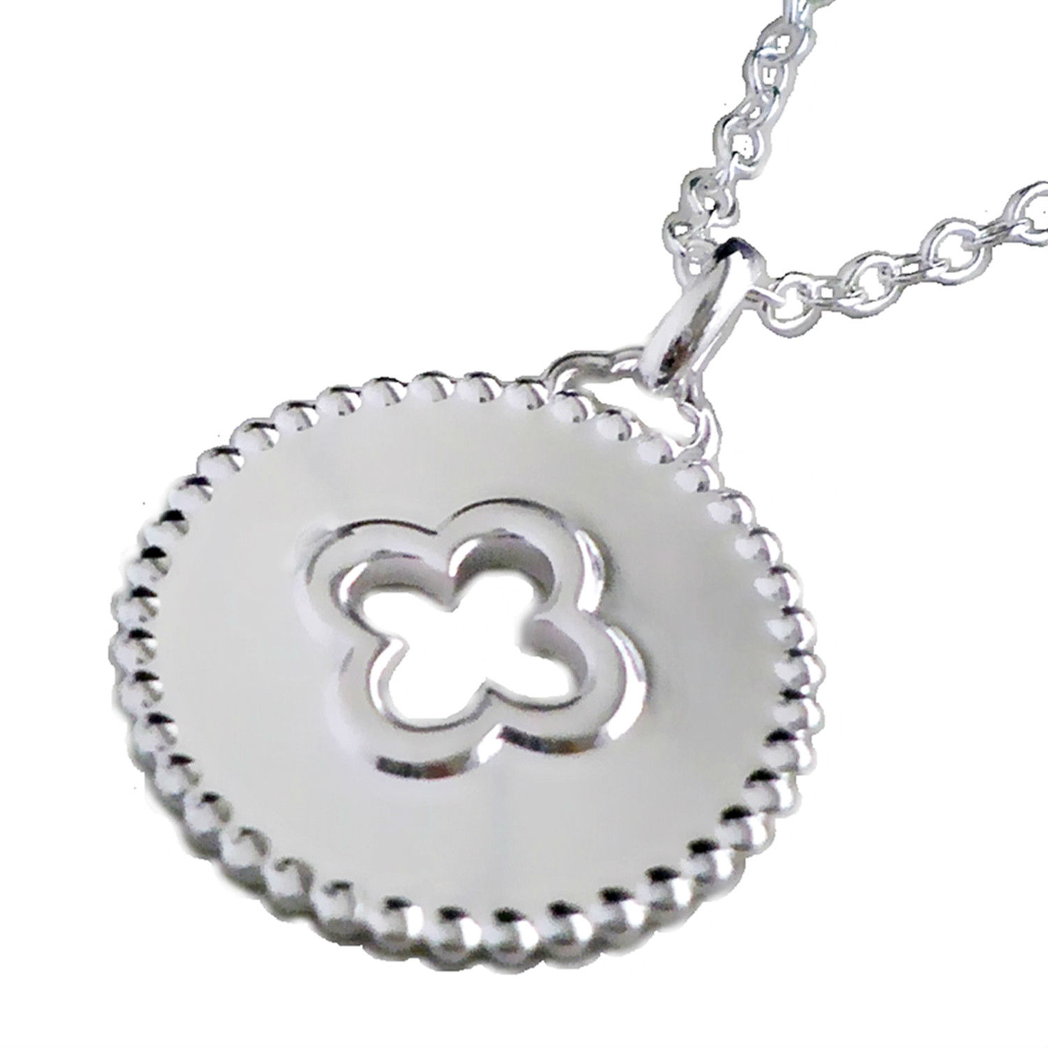 Complete your everyday outfit with this 925 sterling silver necklace for a classic and minimal look. A disc-like charm dangles on the elegant chain, depicting textural rims and a clover cut-off in the center. The polished gather further boasts modest shine to give style and captivate eyes.