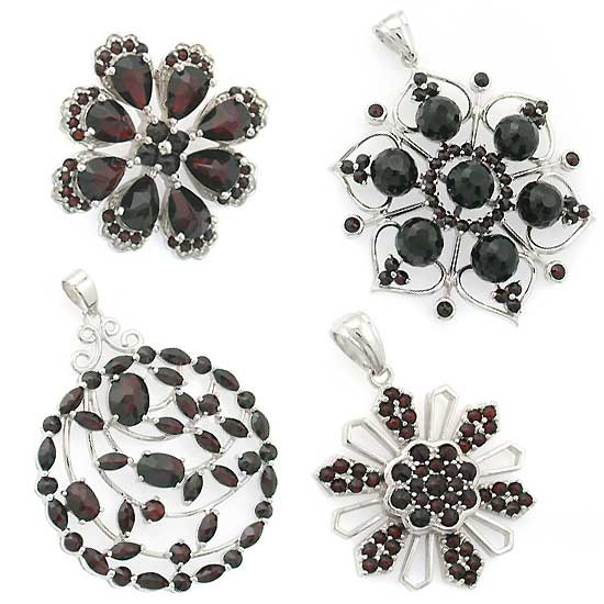This gorgeous sterling silver pendant features a snowflake design. It is accented with well-cut garnets for added brilliance. This 925 silver pendant is ideal for a variety of outfits.