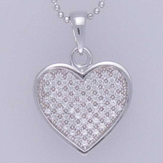 This heart-shaped sterling silver pendant comes with a fashionable appearance. The pendant is fitted with cubic zirconia stones with a micro pave setting. It is a great addition to your jewelry collection.