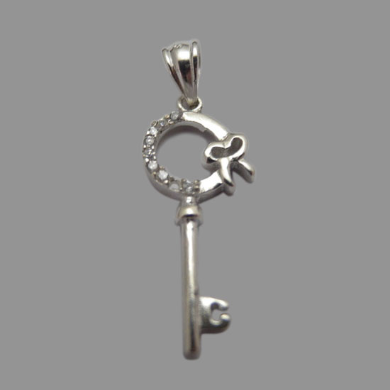 This sterling silver pendant comes in unique key shape. The well-designed pendant goes well with your fashionable outfits. It is a great addition to your jewelry collection.
