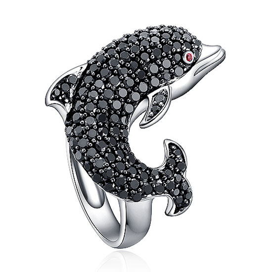 Presented here is a sterling silver ring accented with an adorable dolphin ornament. The cubic zirconia setting showcases glamorous look. This 925 silver ring is ideal for a variety of occasions.