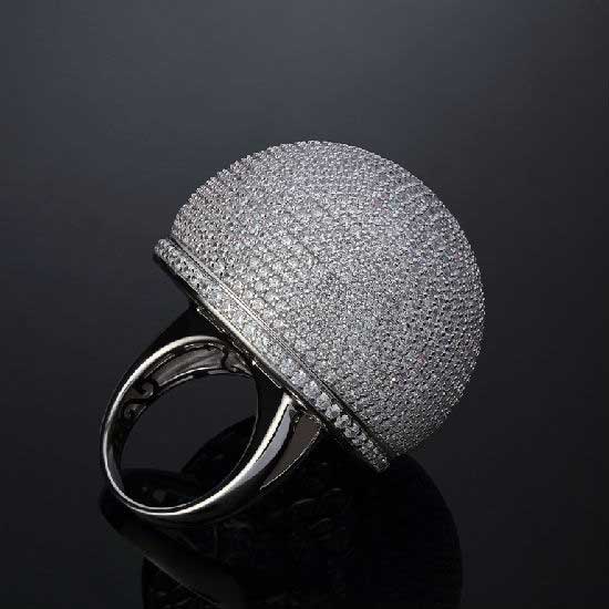 This ring features a sparkling and charming design. It is made of sterling silver with a semi-spherical embellishment which is meticulously paved with shimmering CZ stones. This beautiful ring is a great addition to your jewelry collection.